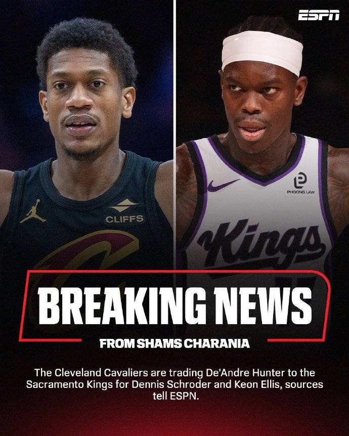 北京时间2月1日消息,据知名记者Shams报道,骑士队与国王队完成交易,亨特被骑士队送到了国王队,换来施罗德和埃利斯。